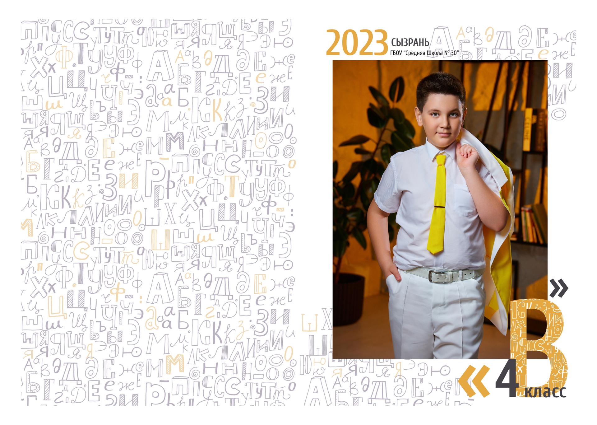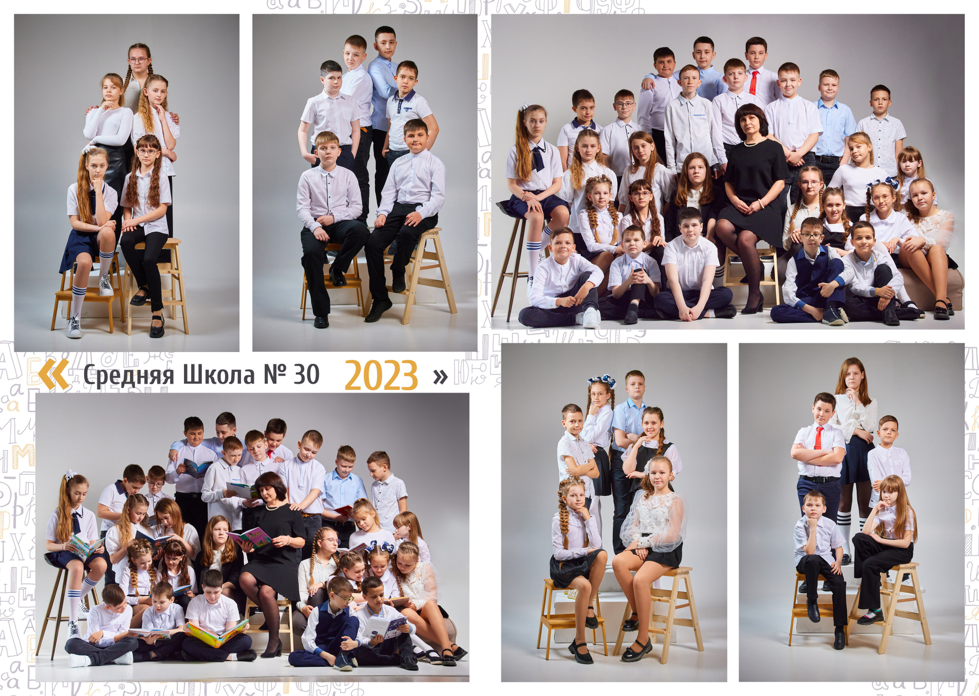 •разворот с групповыми фото и общее фото класса;